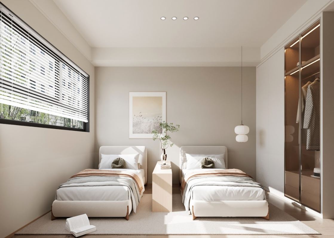- 點綴色運用:加入淡藍色、薄荷綠或米黃色,增強空間的活力與層次感。
