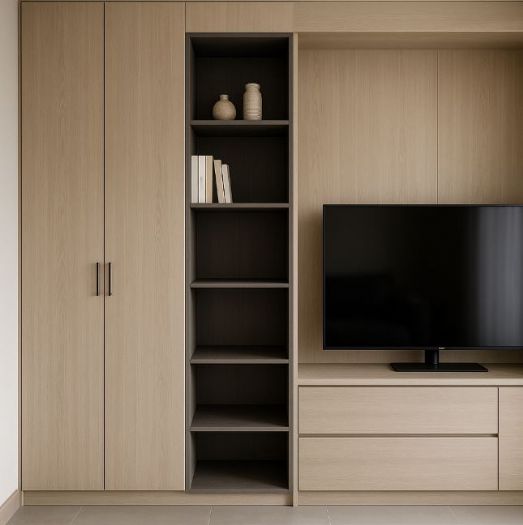 系統櫃的材質與色系應與整體居家風格相呼應,如簡約白色系、木紋質感或霧面金屬風等,可打造出溫暖、現代或工業風等氛圍,提升居家整體設計層次。