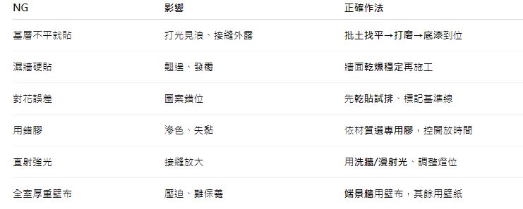 · 潮溼環境(非濕區):優先無紡或PVC壁紙+除濕/通風;避免天然草藤類壁布。