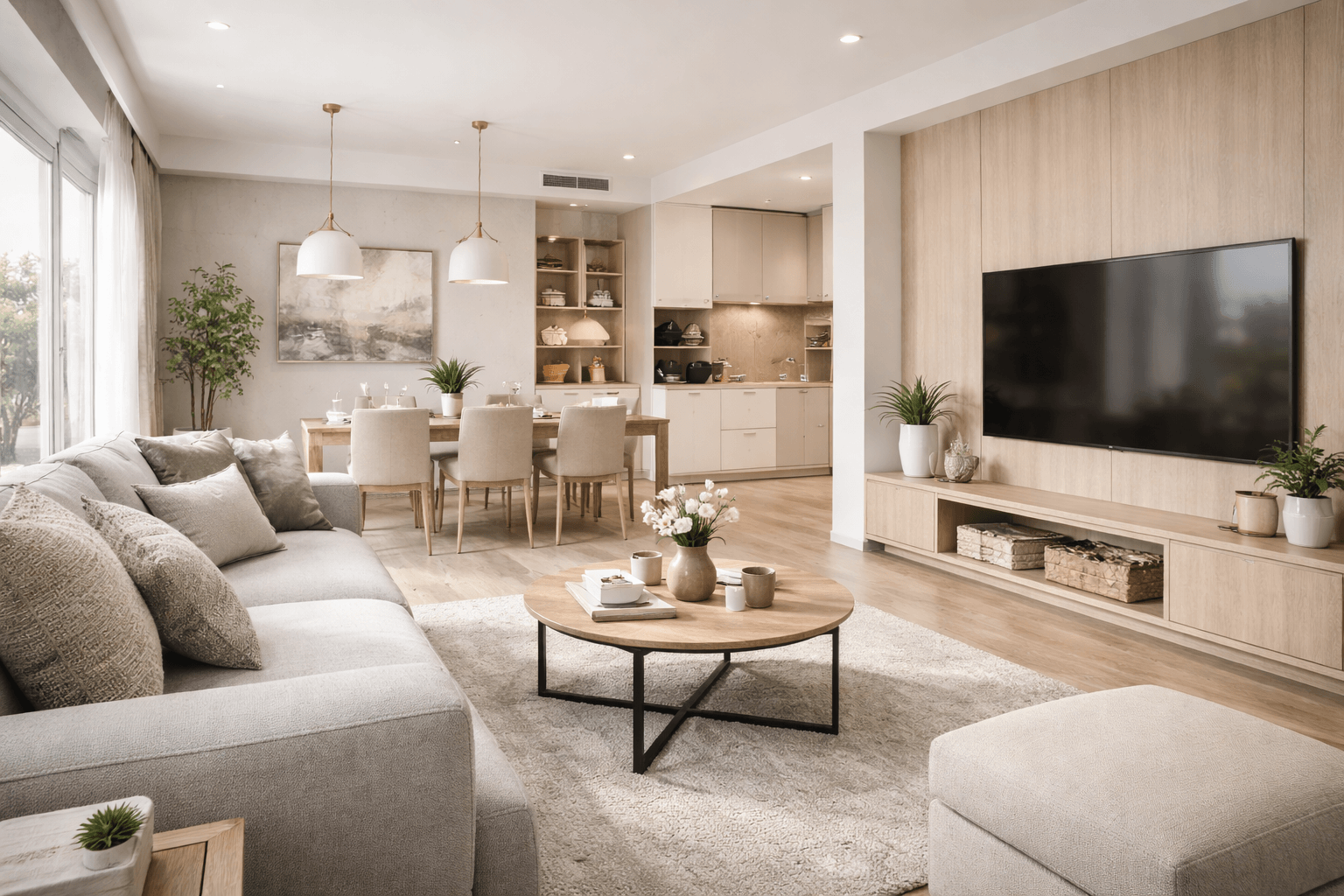 對多數住宅來說,結構樑通常不能任意拆除,因此重點不在「消除樑」,而是透過整體規劃降低突兀感,讓空間看起來更平衡、更有安全感。
