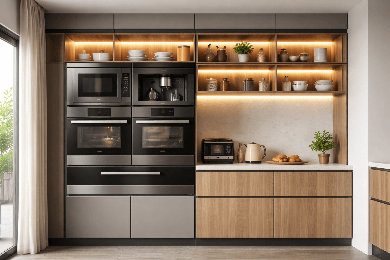 不建議所有區域都完全封閉,特別是加熱型家電需要散熱空間。可依使用需求搭配開放格、透氣孔或抽拉盤設計。