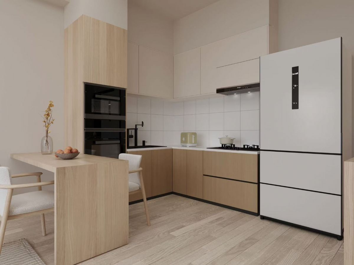 現代簡約與日式無印風完美融合,這套設計以「功能性」與「美學」為核心,營造出溫馨且實用的居家空間。淺色木質搭配柔和的中性色調,讓整體氛圍倍感自然舒適;開放式廚房與客廳無縫銜接,提升空間流動性與互動性。電視牆簡約設計與嵌入式收納完美結合,打造整潔有序的居住環境。大面窗戶引入自然光,與溫暖的木地板相輝映,更顯空間明亮與寬敞。