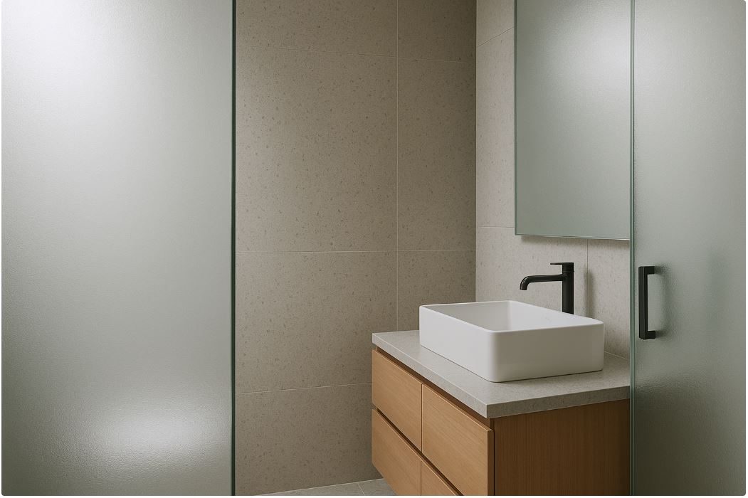 - 浴室與廚房:磨砂玻璃常見於浴室門片、淋浴隔間、廚房拉門,既能透光又能遮蔽視線。