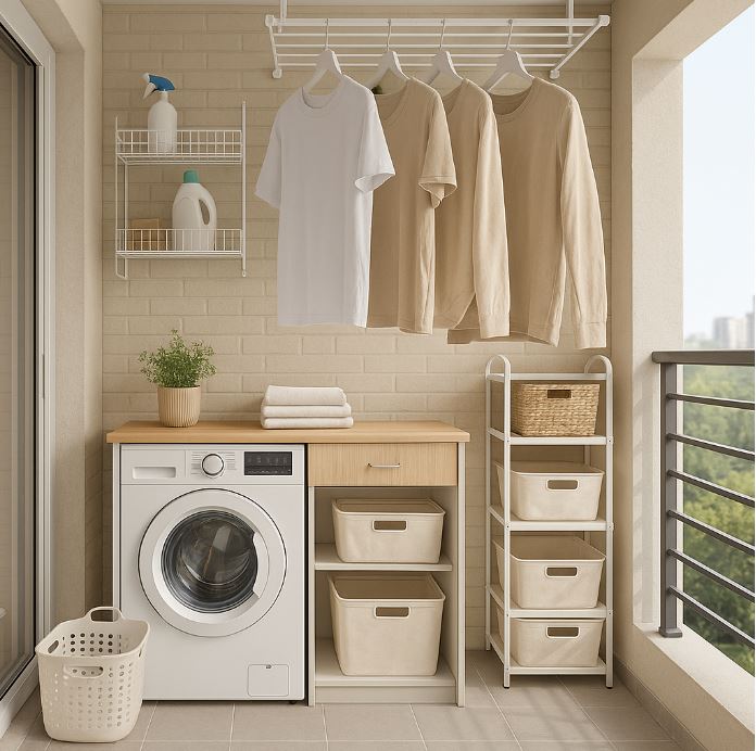 - 居家收納區:陽台若有適合的防水置物櫃,可以有效收納清潔用品、工具、回收物等,避免室內雜亂。
