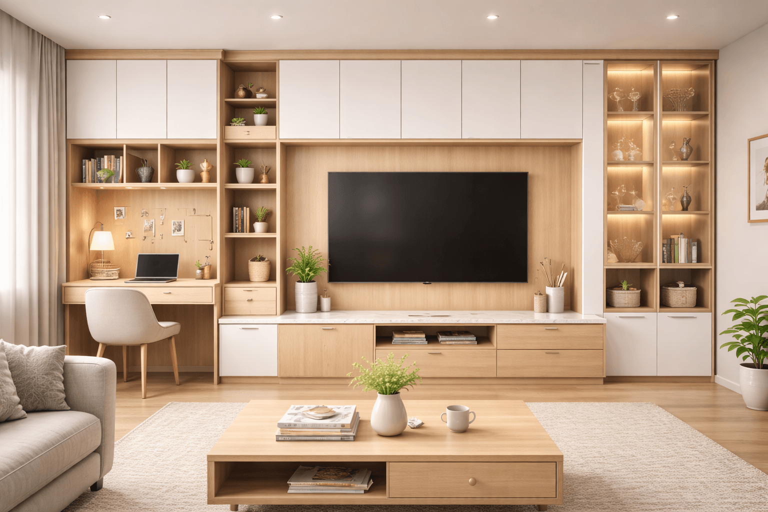 系統櫃若搭配間接燈光、展示燈或櫃內照明,不只能提升氛圍,也能讓使用更方便。尤其展示櫃、衣櫃與書櫃,常因照明而差很多。