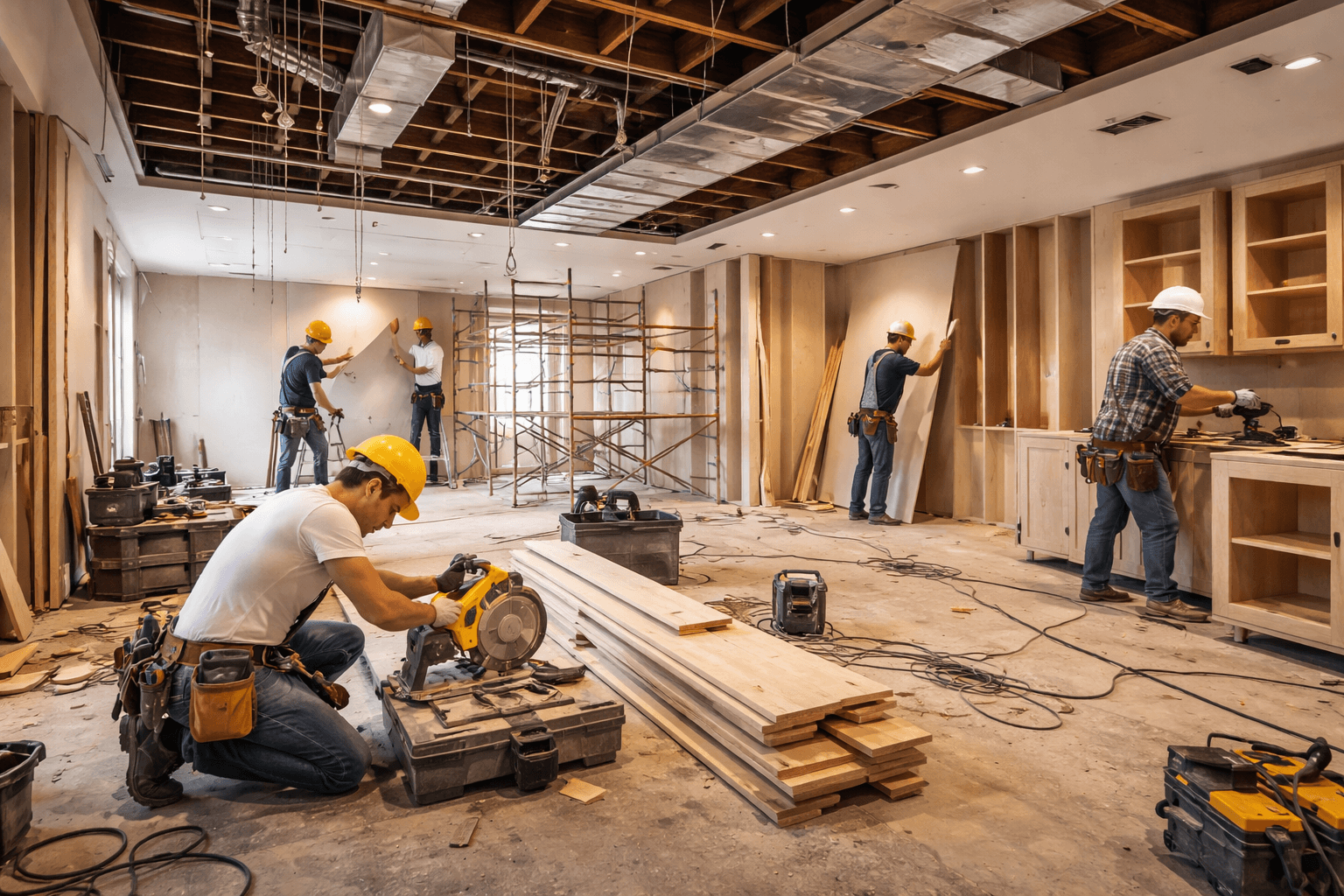 基礎工程常包含拆除、水電、泥作、防水、木作、油漆、地坪與天花板等。這些屬於裝修中最核心、也最容易影響整體預算的項目。