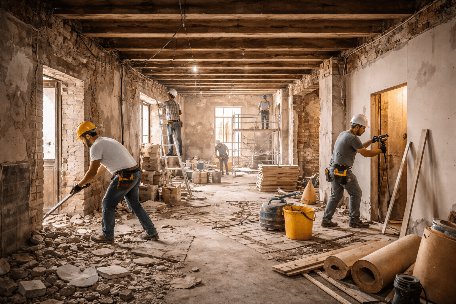 老屋整修常見的關鍵點之一,就是拆除後重新確認真實屋況。這個階段常會發現牆內、地坪或天花板的隱藏問題,因此非常重要。
